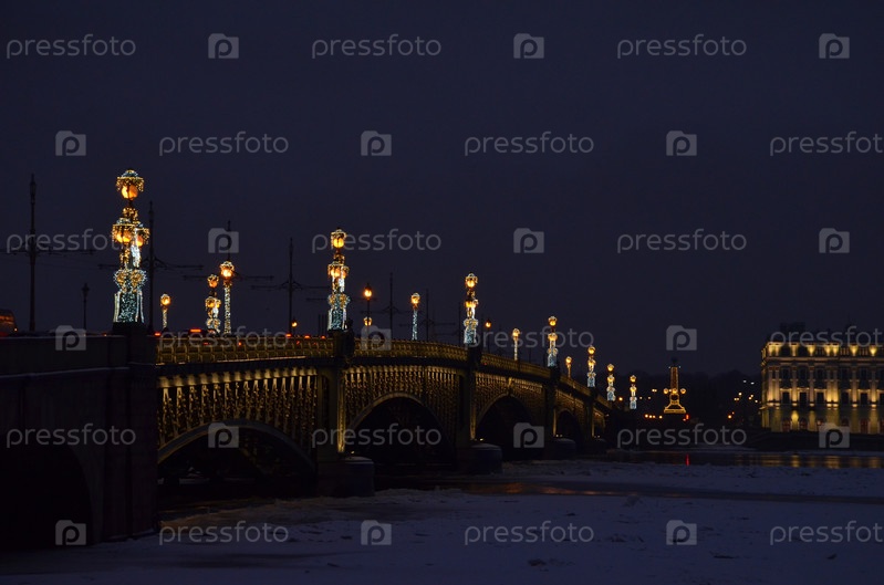 Троицкий мост в Санкт-Петербурге, украшенный к Новому году