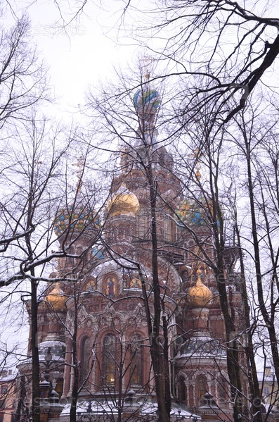 Храм Воскресения Христова на Крови (храм Спаса на Крови) в Санкт-Петербурге зимой, вид со стороны Михайловского сада