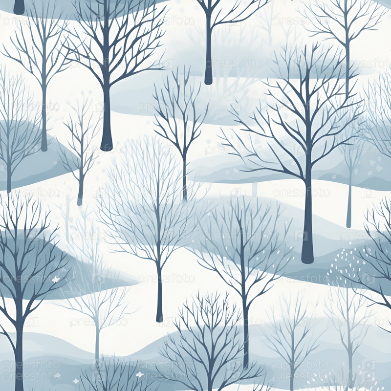 Зимний пейзаж с деревьями Бесшовный узор