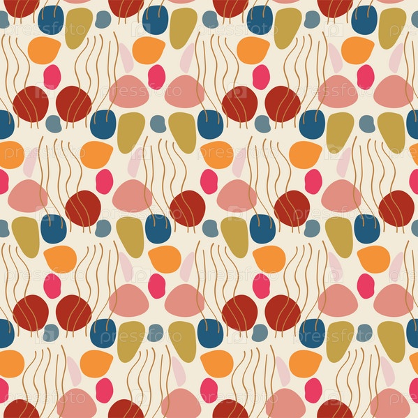 Абстрактные модные бесшовные узоры с нарисованными вручную красочными фигурами