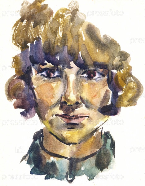 Портрет молодой женщины с короткими волосами. Акварельная иллюстрация