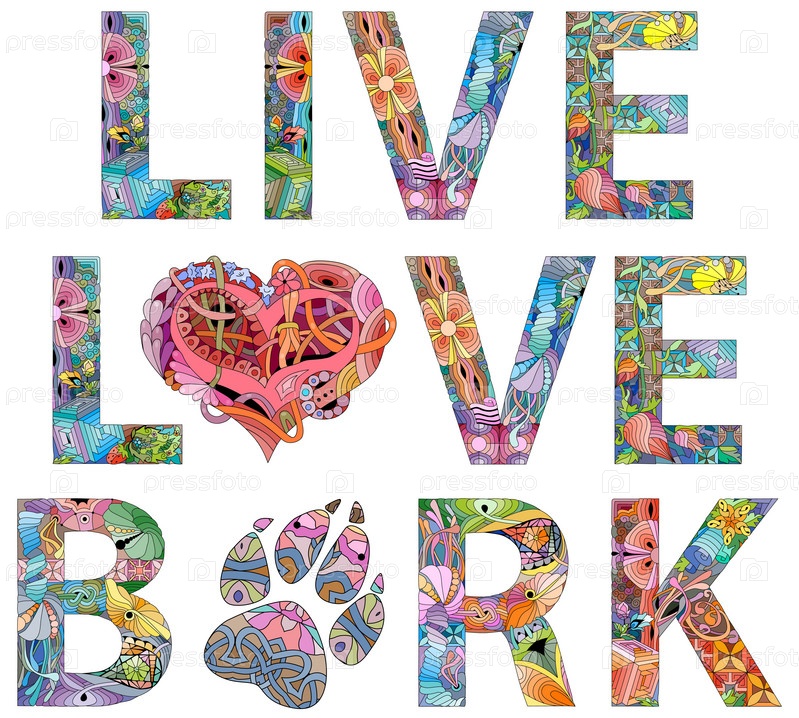 Ручная роспись художественного дизайна.Ручно нарисованное иллюстративное слово Live Love Bark для футболок и других украшений