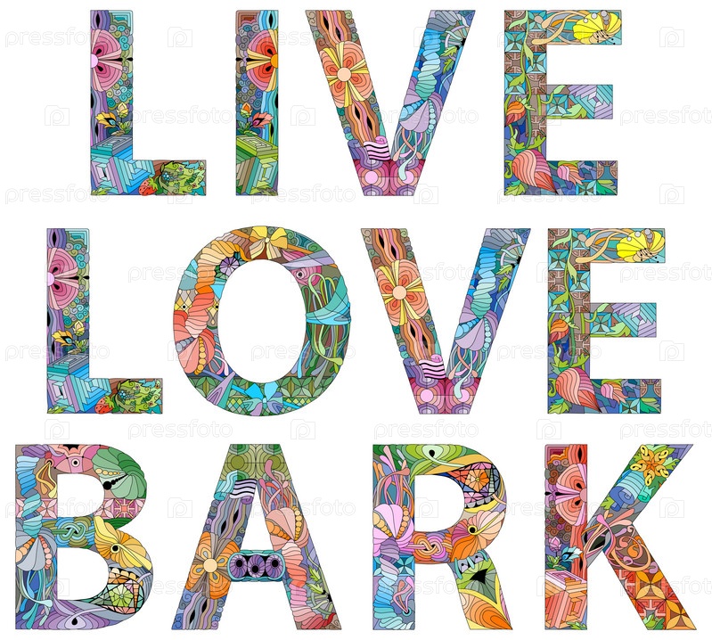 Ручная роспись художественного дизайна.Ручно нарисованное иллюстративное слово Live Love Bark для футболок и других украшений
