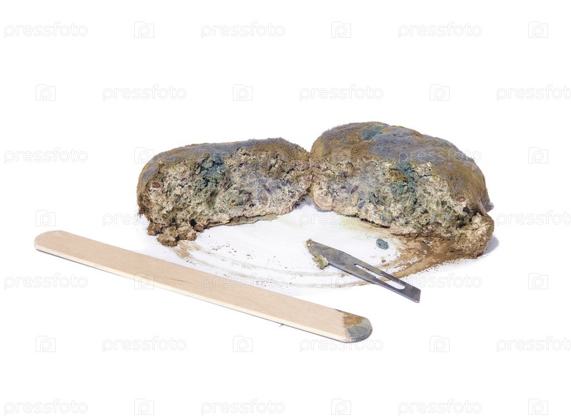 Заплесневелый хлеб. Испорченное хлебобулочное изделие покрыто спорами грибов
