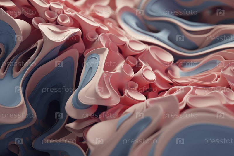 Биоморфная абстракция. Розовый и синий фон с фигурными формами в нейтральной палитре