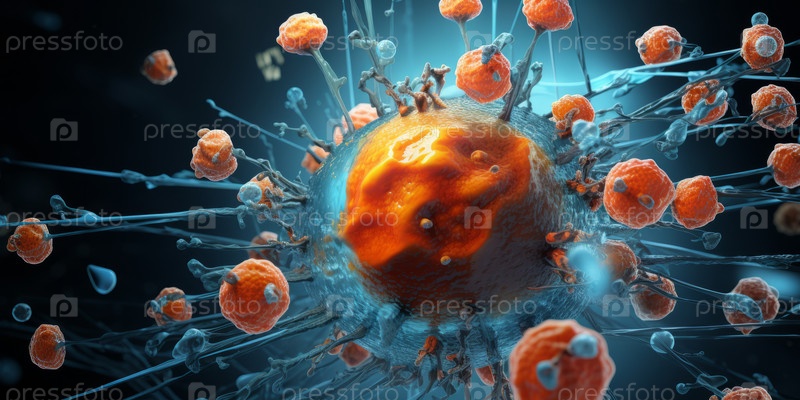 Коронавирус 2019-nCoV и вирусный фон с болезнетворными клетками и эритроцитами