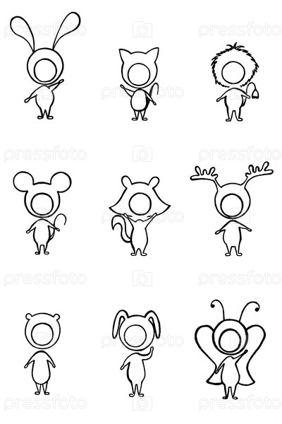 Контурный рисунок детей, нарисованный от руки карандашом. Детские костюмы к празднику