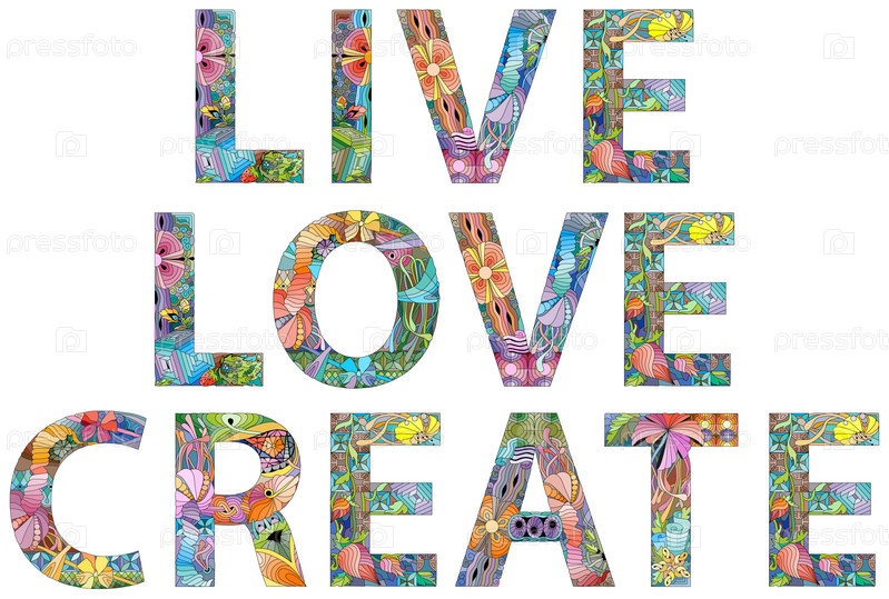 Ручная роспись художественного дизайна.Ручно нарисованное иллюстративное слово Live Love Create для футболок и других украшений
