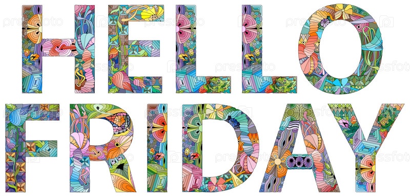 Ручная роспись художественного дизайна.Ручно нарисованные иллюстрации слов HELLO FRIDAY для футболок и других украшений