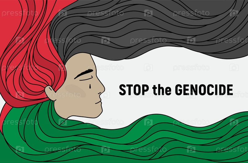 Изображение женщины на флаге Палестины. Остановить геноцид