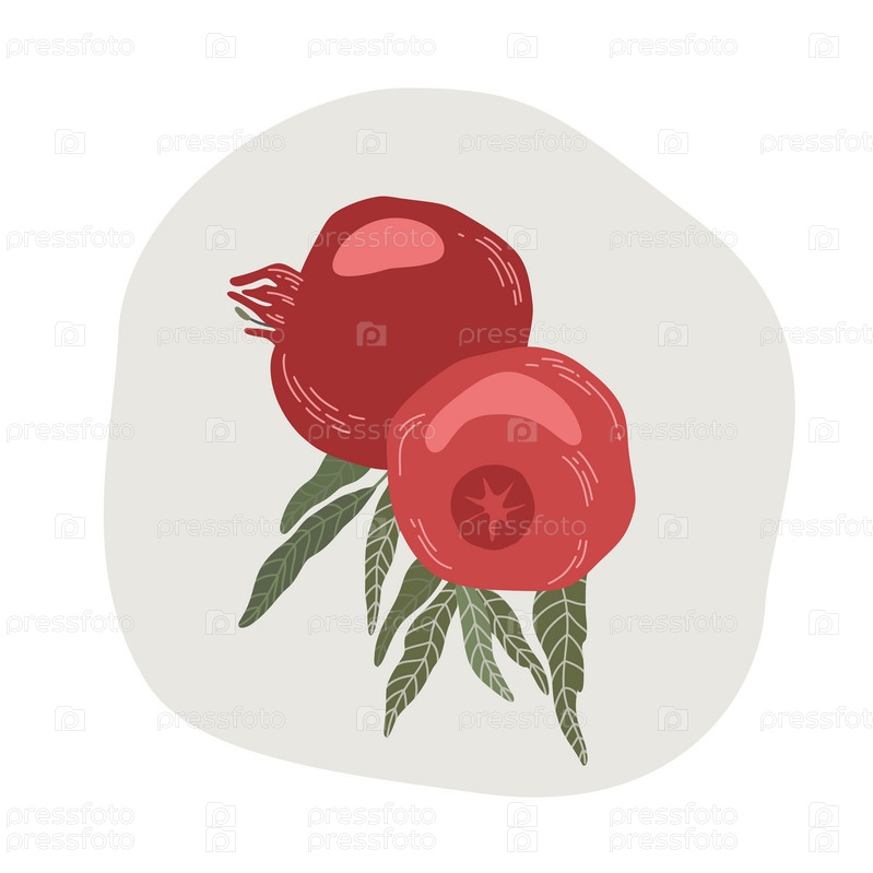 Графика граната на ветке. Гранатовый красный плод
