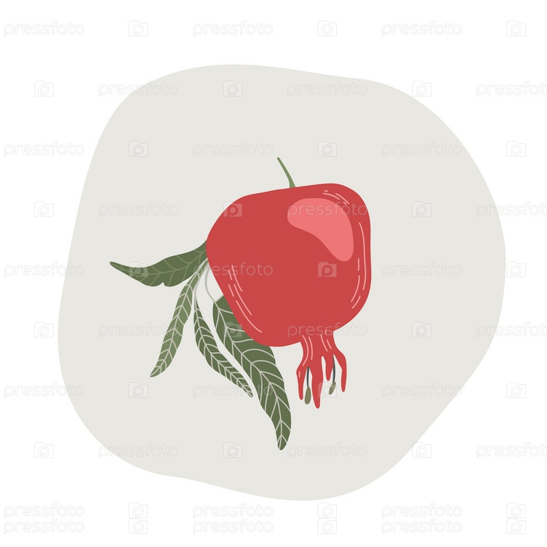 Графика граната с листьями. Гранатовый красный плод