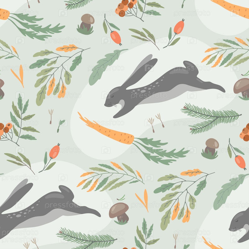 Простой бесшовный узор с лесным животным, листьями