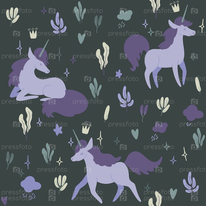 Бесшовные мультяшные единороги. Текстиль, печать