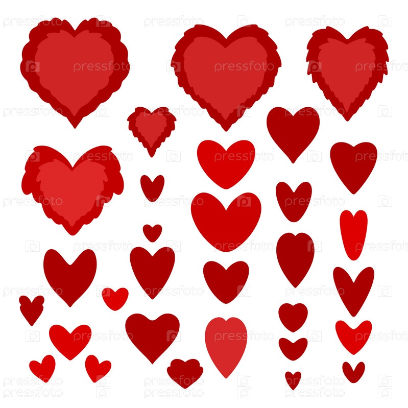 Векторные наборы различных форм, цвета, размеров сердец