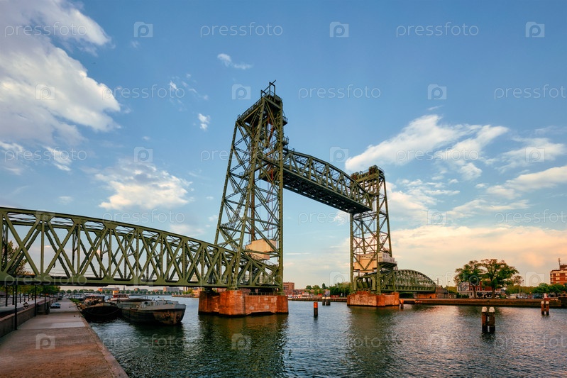 Де Хеф или Конингсхавенбруг - старый железнодорожный подъемный мост через Конингсхавен в Роттердаме, Нидерланды