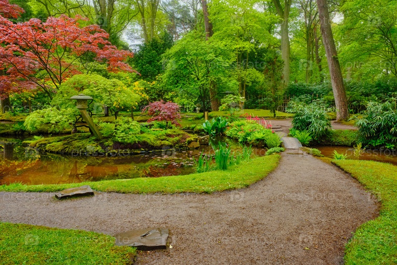 Маленький японский сад после дождя, парк Клингендал, Гаага, Нидерланды