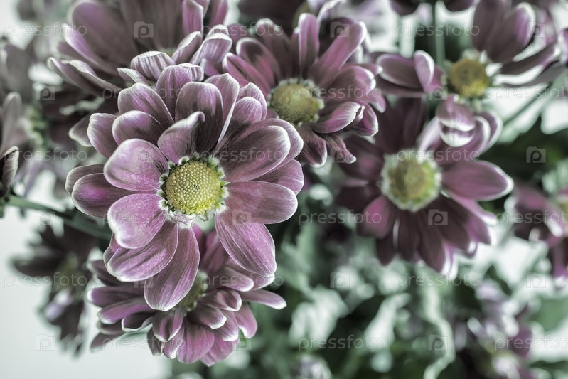 Красивая белая хризантема в букете среди других цветов. Представлено крупным планом