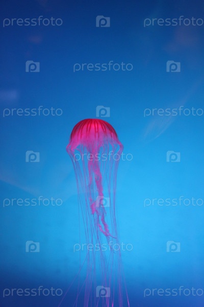 Розовая медуза в синей воде
