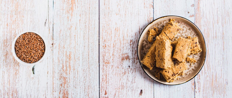 Кусочки халвы с семенами льна на тарелке на столе, вид веб-баннера