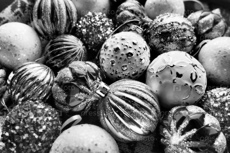 Новогодние елочные шары и украшения закрывают поверхность. Монохромный черный белый серебристый. Полосатые современные елочные шары. Праздничный красивый фон. Дизайн Рождества. Украшаем дом к зимним праздникам