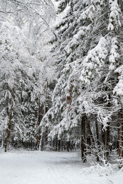Заснеженные ели в зимнем лесу после снегопада природный ландшафт