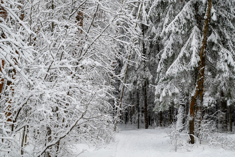 Заснеженные ели в зимнем лесу после снегопада природный ландшафт