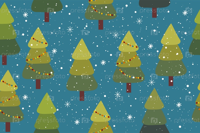 Векторная иллюстрация счастливого Рождества и Нового года. Бесшовный фон из елей. Фон шаблона для печати и подарочной упаковки. Векторная иллюстрация