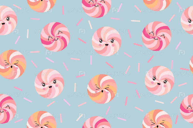 Бесшовный узор из красочных леденцов. Векторная иллюстрация на синем фоне