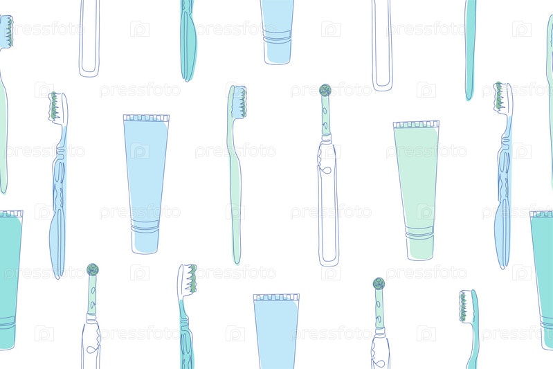Бесшовный рисунок зубных щеток и зубной пасты. Векторная иллюстрация. Вектор
