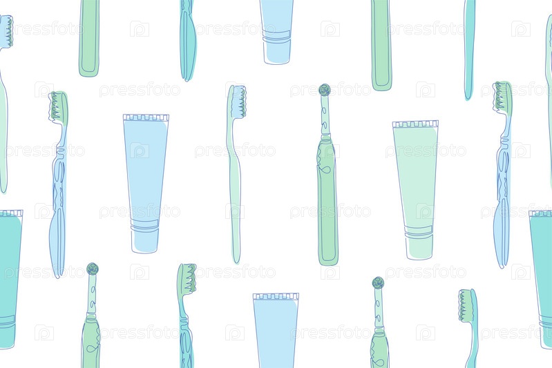 Бесшовный рисунок зубных щеток и зубной пасты. Векторная иллюстрация. Вектор