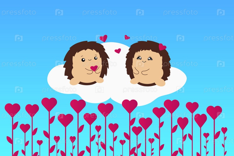 Симпатичные ежики. Валентинка. Векторная иллюстрация на синем фоне