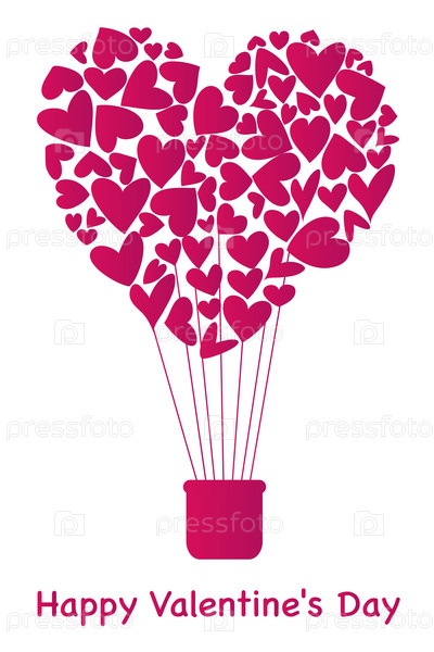 Воздушный шар из сердечек. Открытка ко Дню святого Валентина... Векторная иллюстрация