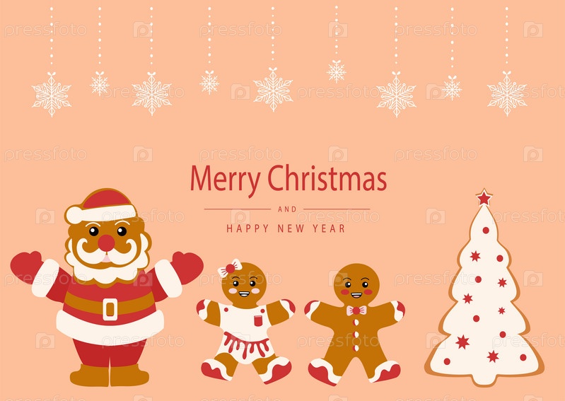 Веселая рождественская открытка. Празднование Нового года и Рождества