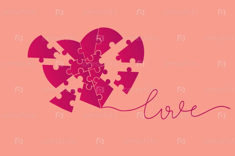 Сердце, символ любви и Дня святого Валентина. Большое сердце из маленьких розовых сердечек и надписи «любовь». Векторная иллюстрация. Векторная иллюстрация