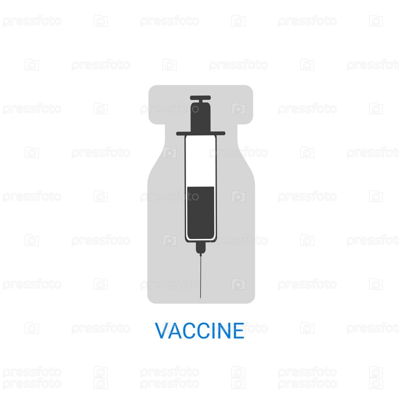 Плоская иконка флакона с вакциной и шприца. Изолированный векторный рисунок на белом фоне