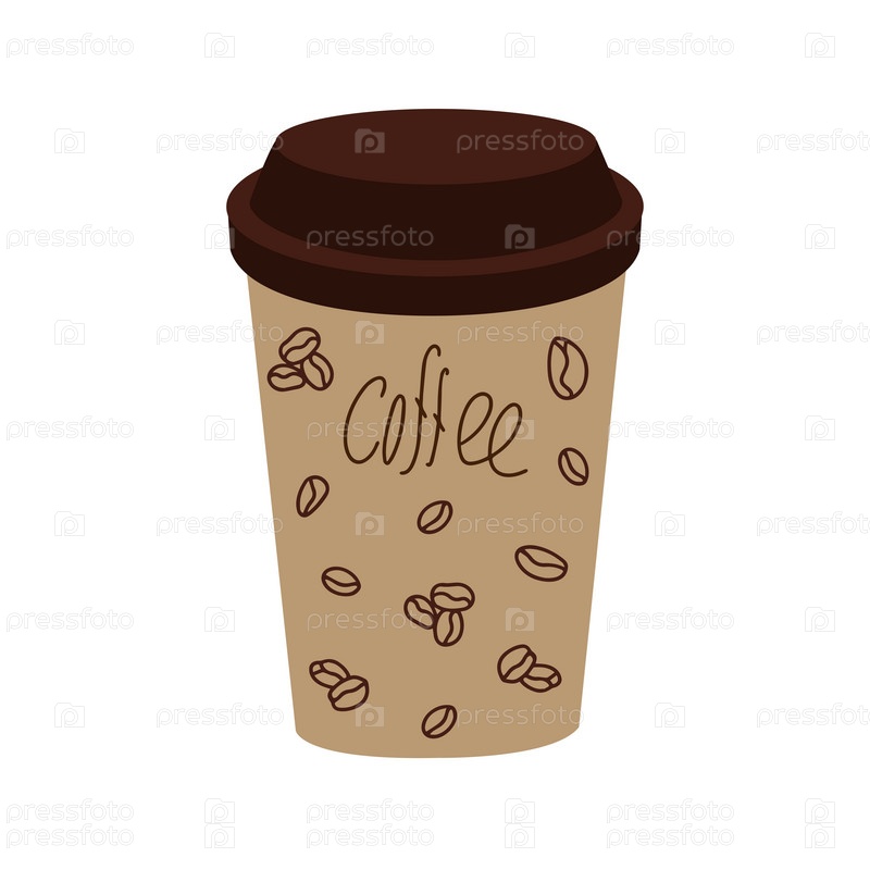 Пластиковая чашка кофе с значком каракулей. Нарисованная вручную многоразовая пластиковая чашка. Мокап кофейной чашки. Векторная иллюстрация