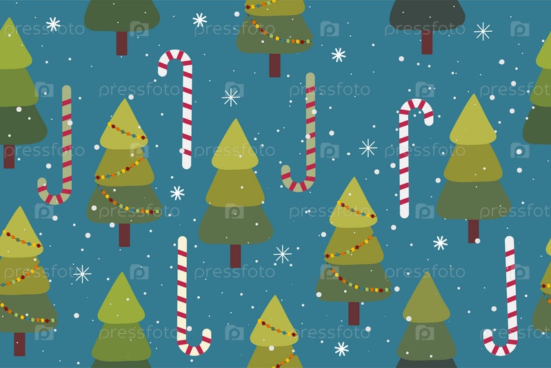 Векторная иллюстрация счастливого Рождества и Нового года. Бесшовный фон из елей. Фон шаблона для печати и подарочной упаковки. Векторная иллюстрация