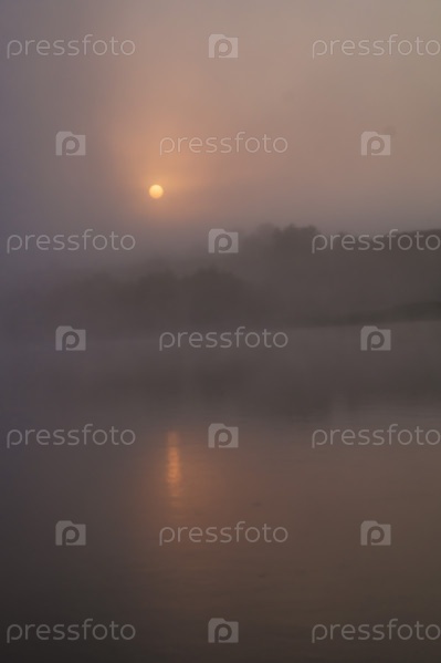 Туманный рассвет над сибирской рекой