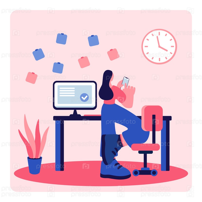 Фрилансер работает удаленно с домашнего рабочего места с векторной иллюстрацией