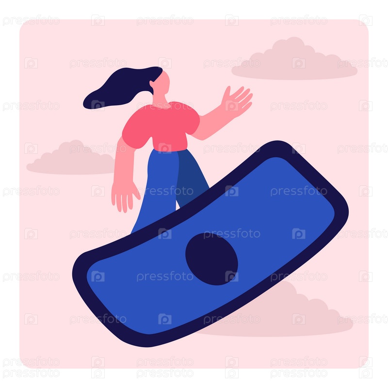 Девушка летает на концепции финансового успеха векторной иллюстрации