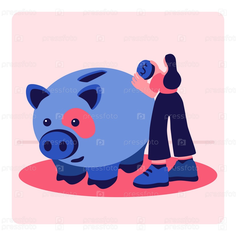 Экономьте деньги векторные иллюстрации человек кладет деньги в копилку инвестировать в будущее