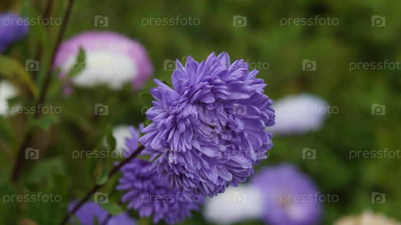 Осенние цветы астра на клумбе
