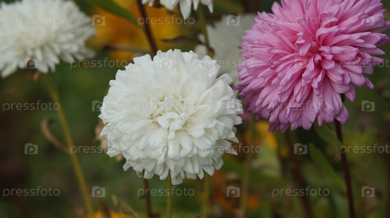 Цветы астра на осенней клумбе