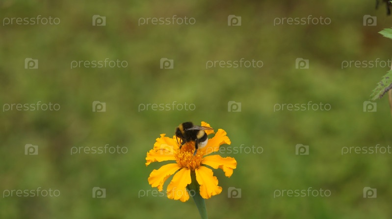 Шмель сидит на желтом цветке