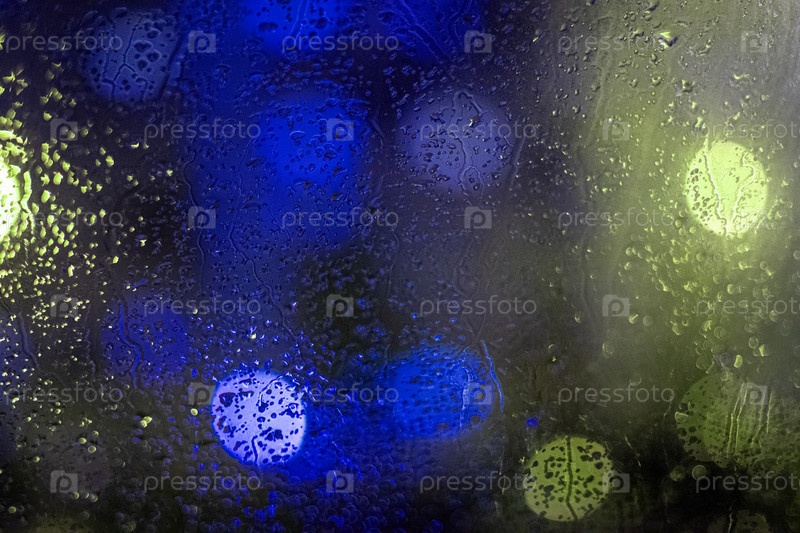 Блики огней ночного города на лобовом стекле автомобиля, боке, расфокусировка
