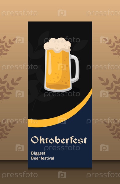 Баннер вертикальный октоберфест с вектором пива на темном фоне для алкогольного паба