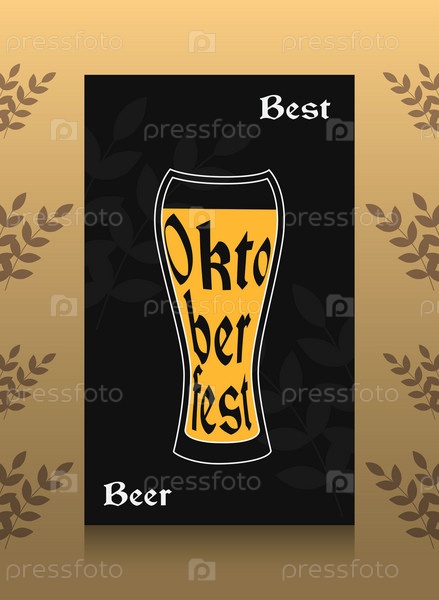 Плакат вертикального лучшего пива на темном фоне с текстом Октоберфест на кружке векторного алкогольного паба