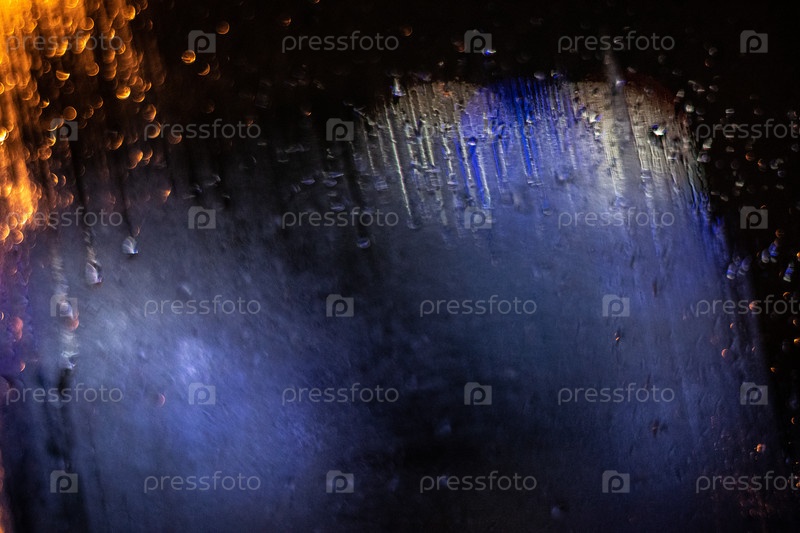Боке-свет ночного города под дождем, падает на окно машины, размытый фон