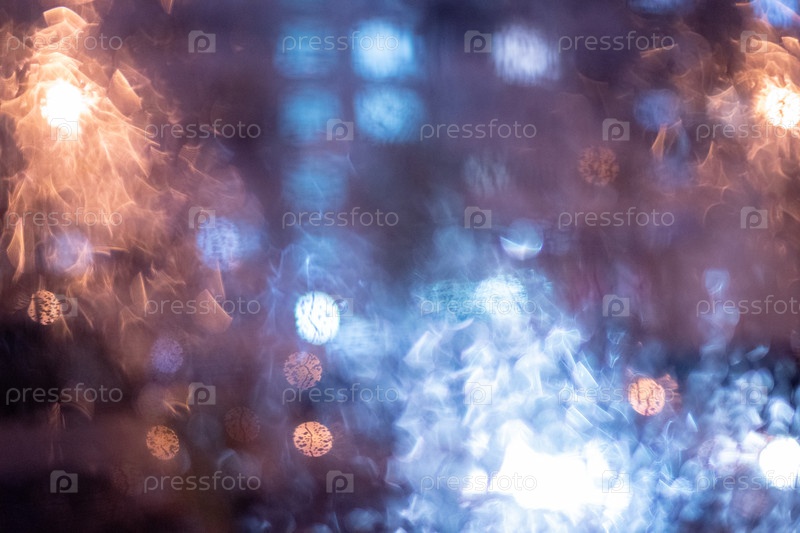 Боке-свет ночного города под дождем, падает на окно машины, размытый фон